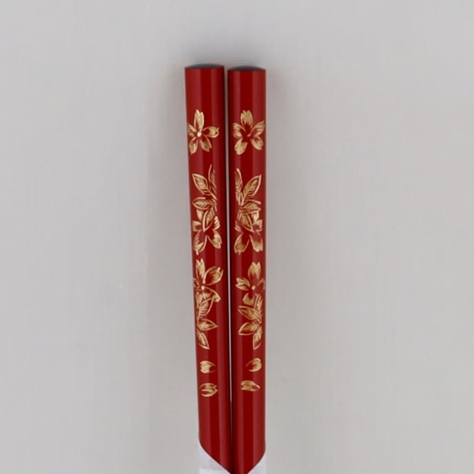 この箸は、熟練した職人の手による、朱塗り仕上げと春秋沈金の華やかさが特徴です。一つ一つ丁寧に沈金鑿で彫り上げられた箸は、使用するたびにその魅力が増し、日常の食事を特別な体験へと昇華させてくれます。 お料理の色合いや盛り付けを美しく引き立て、日々の食卓に和のテイストを添えます。