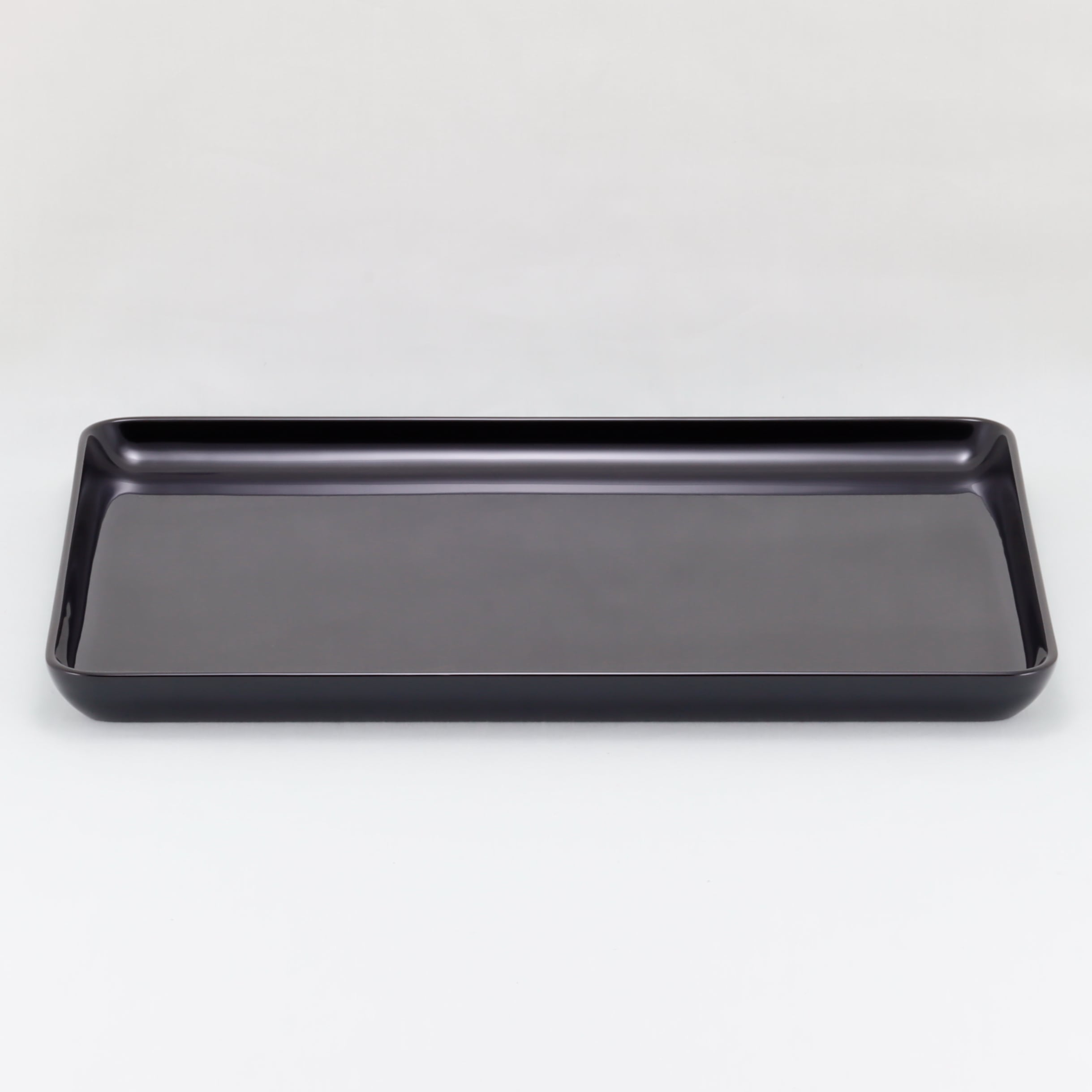 日本の美を感じる、輪島塗の長手盆です。この長手盆は、横幅約36.0㎝の大きさで、使い勝手が良く、さまざまな場面で活躍します。総黒塗りの華やかさと気品を兼ね備え、日常使いから特別な行事まで幅広くご利用いただけます。