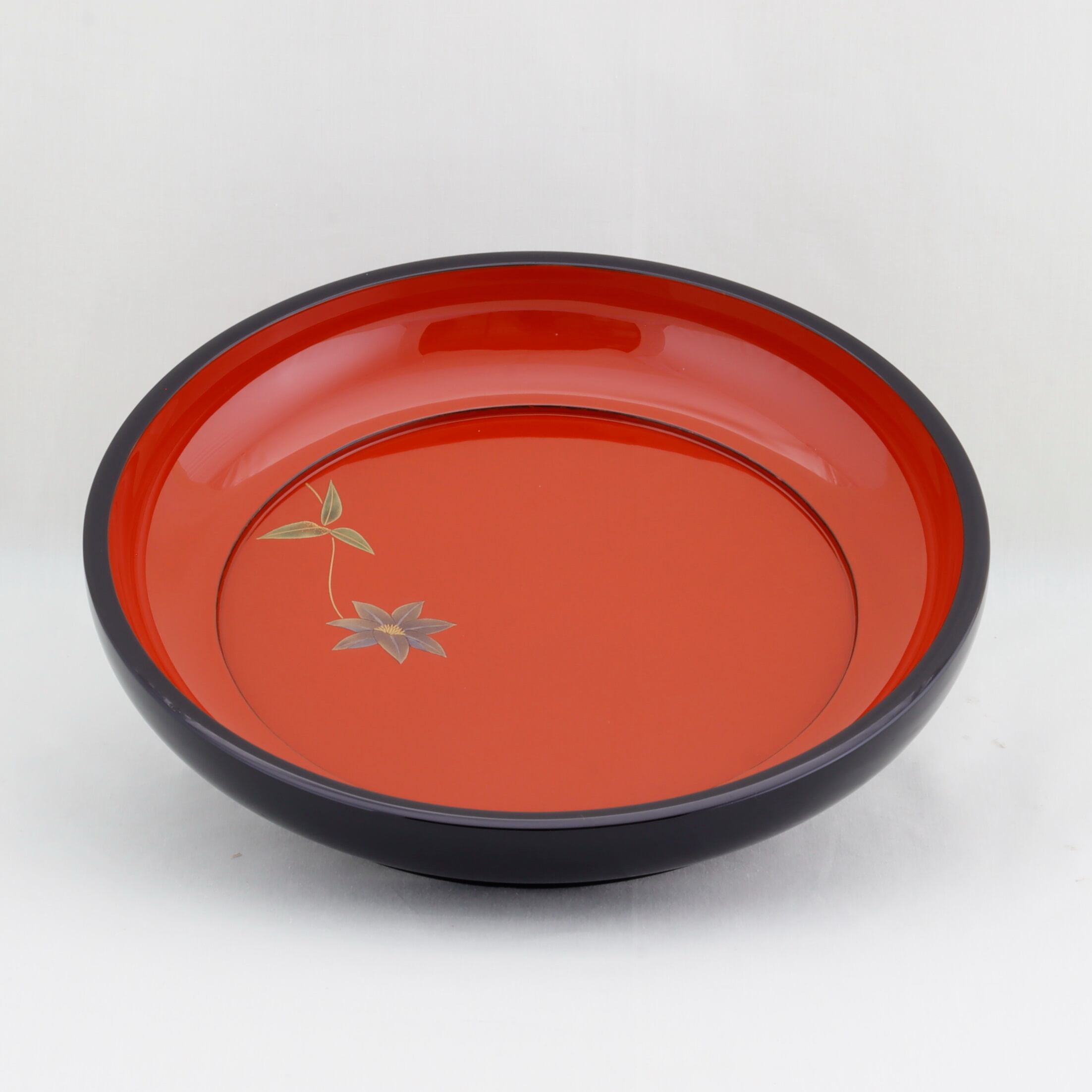 この盛器は、黒内洗朱塗に仕上げられた美しいデザインが特徴で、鉄線蒔絵が施されています。シンプルながらも、華やかさを感じさせるこの盛器は、料理を一段と引き立てる魅力を持っています。 特別なテーブルシーンにぴったりなアイテムで、あらゆる料理を美しく盛り付けるための広い底面が魅力です。和の心を感じさせるこの盛器は、ホームパーティやおもてなしの場でも存在感を発揮します。