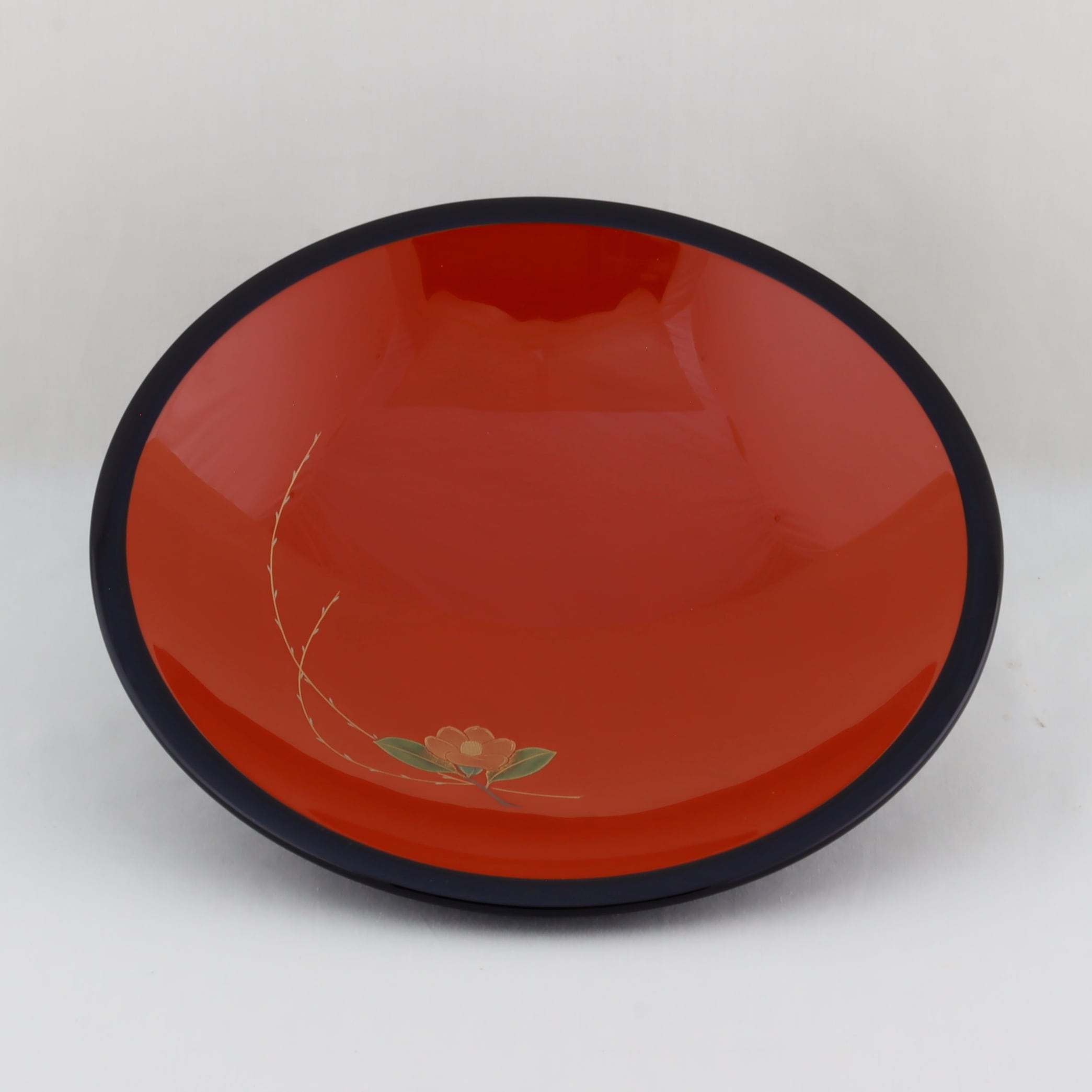 この盛器は、黒内洗朱塗に仕上げられた優雅なデザインが特徴で、椿蒔絵の優雅な装飾が施されています。シンプルでありながら、華やかさを兼ね備えたこの盛器は、料理を一段と引き立てる魅力を持っています。