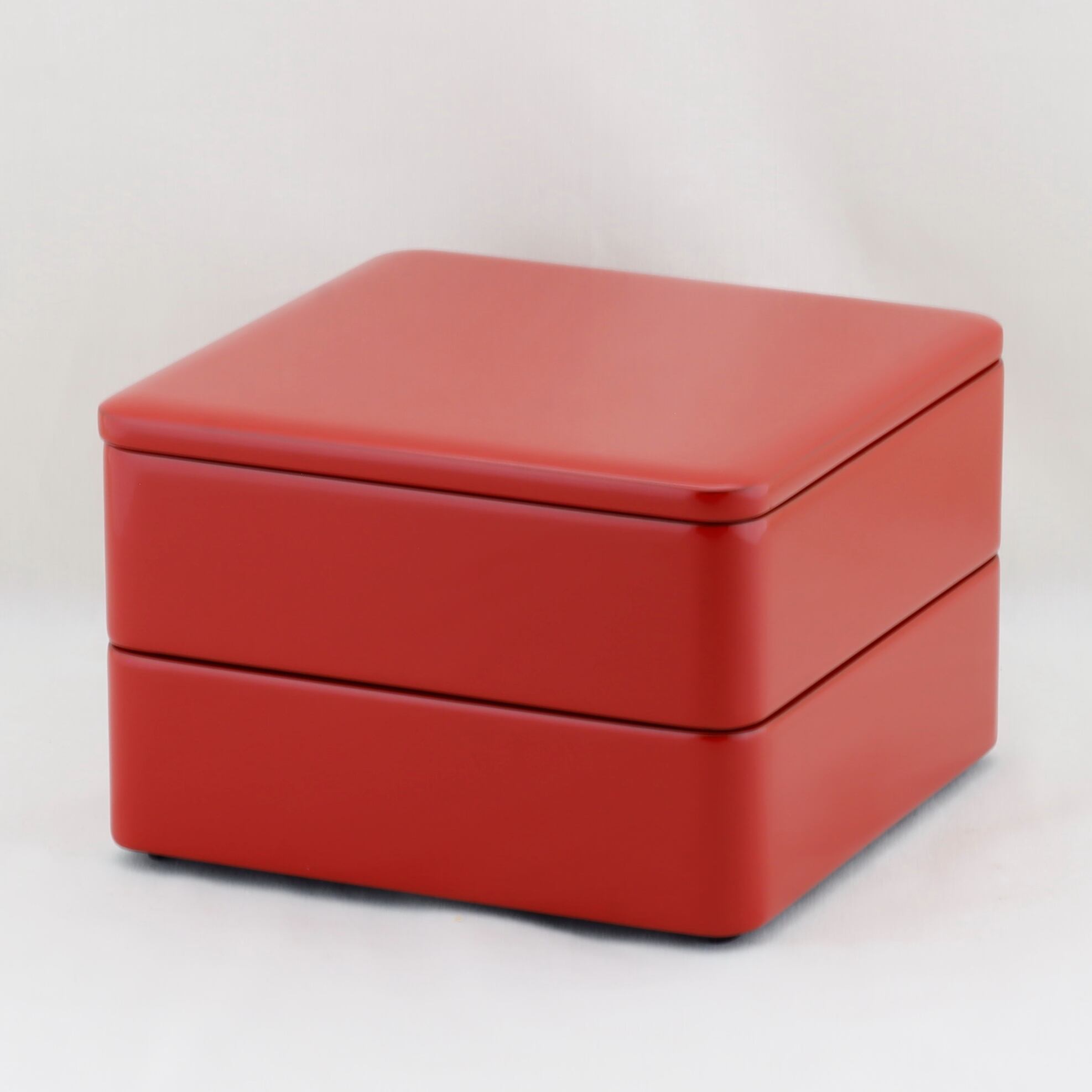 この二段重は、特別な日のおもてなしや、日常の食卓を華やかに演出するためにデザインされたアイテムです。朱塗のシンプルでありながら華やかな外観が特長で、どんな料理も引き立たせてくれます。