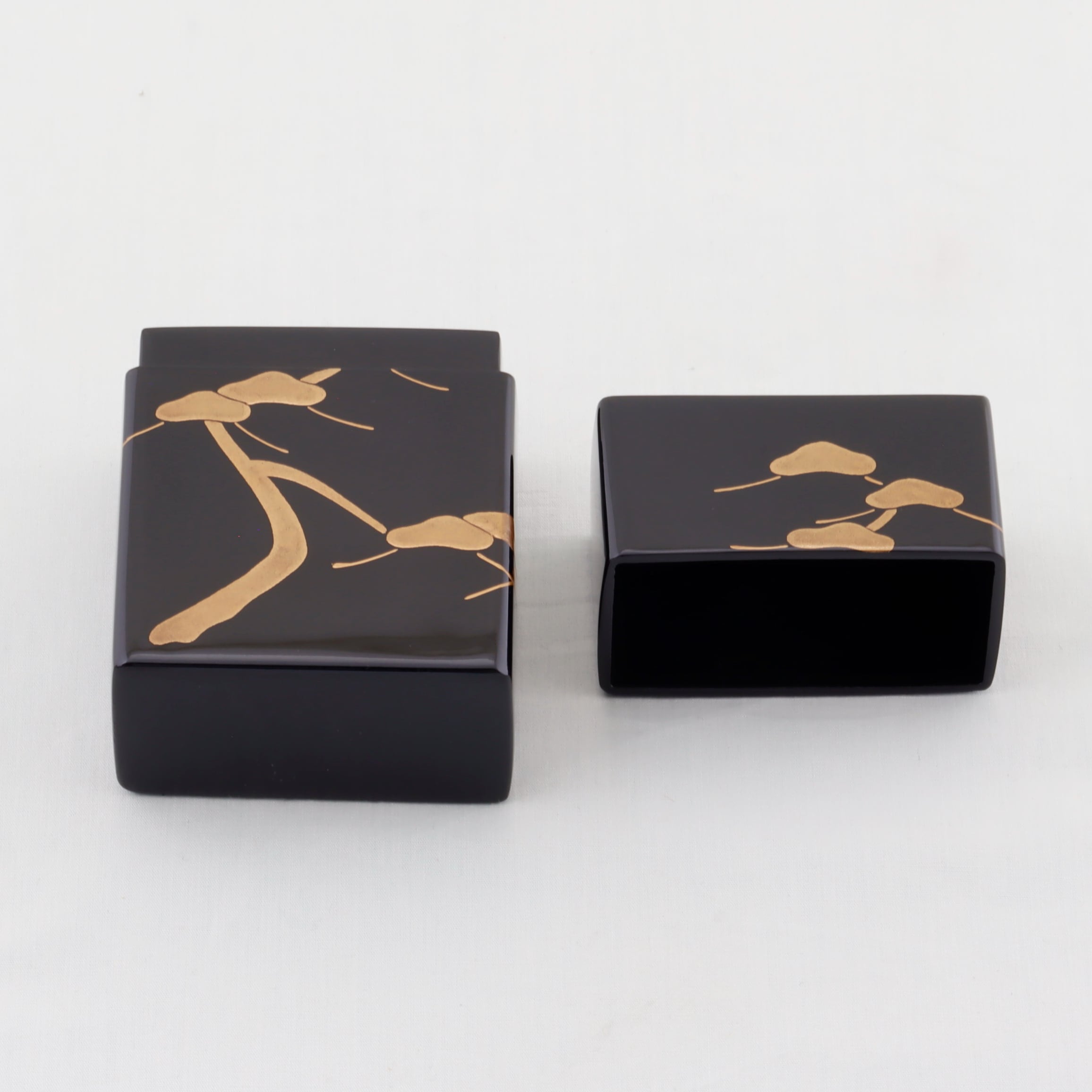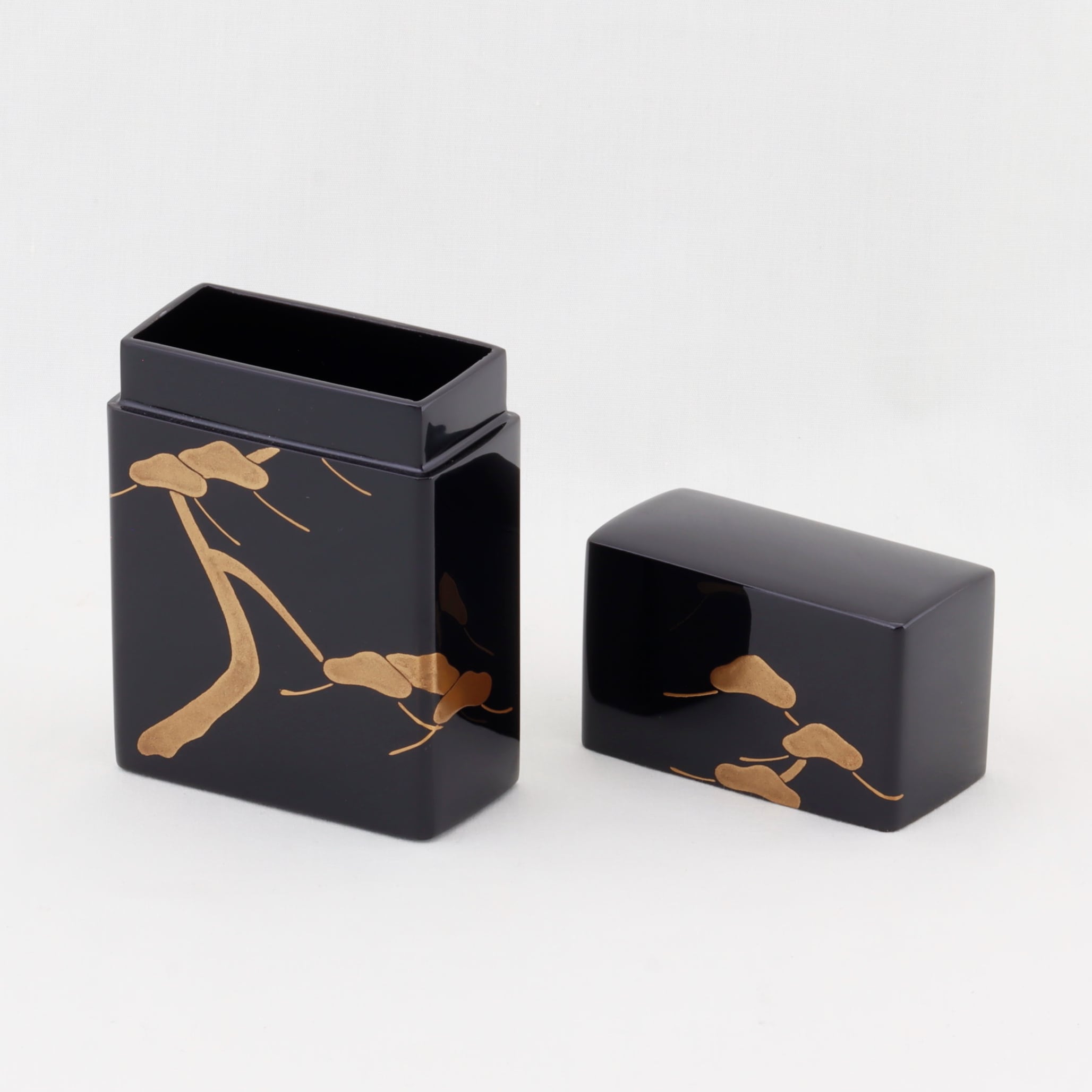 この名刺ケーズは、乾漆造りと呼び、布を天然漆で塗り重ねています、深い黒塗に優雅な松蒔絵が施されており、洗練されたデザインが魅力です。ビジネスシーンや大切な場面にぴったりのアイテムとして、上品さを演出します。