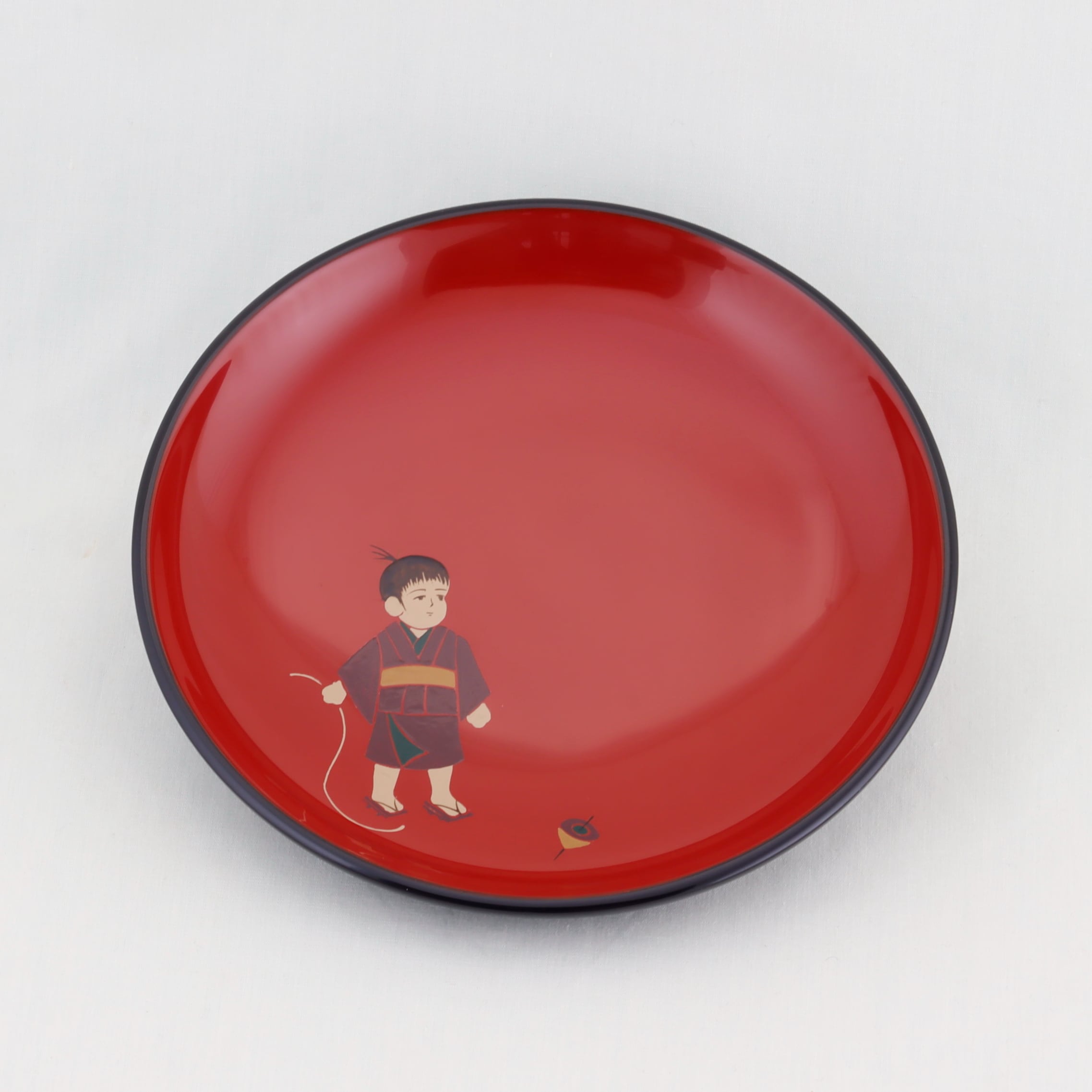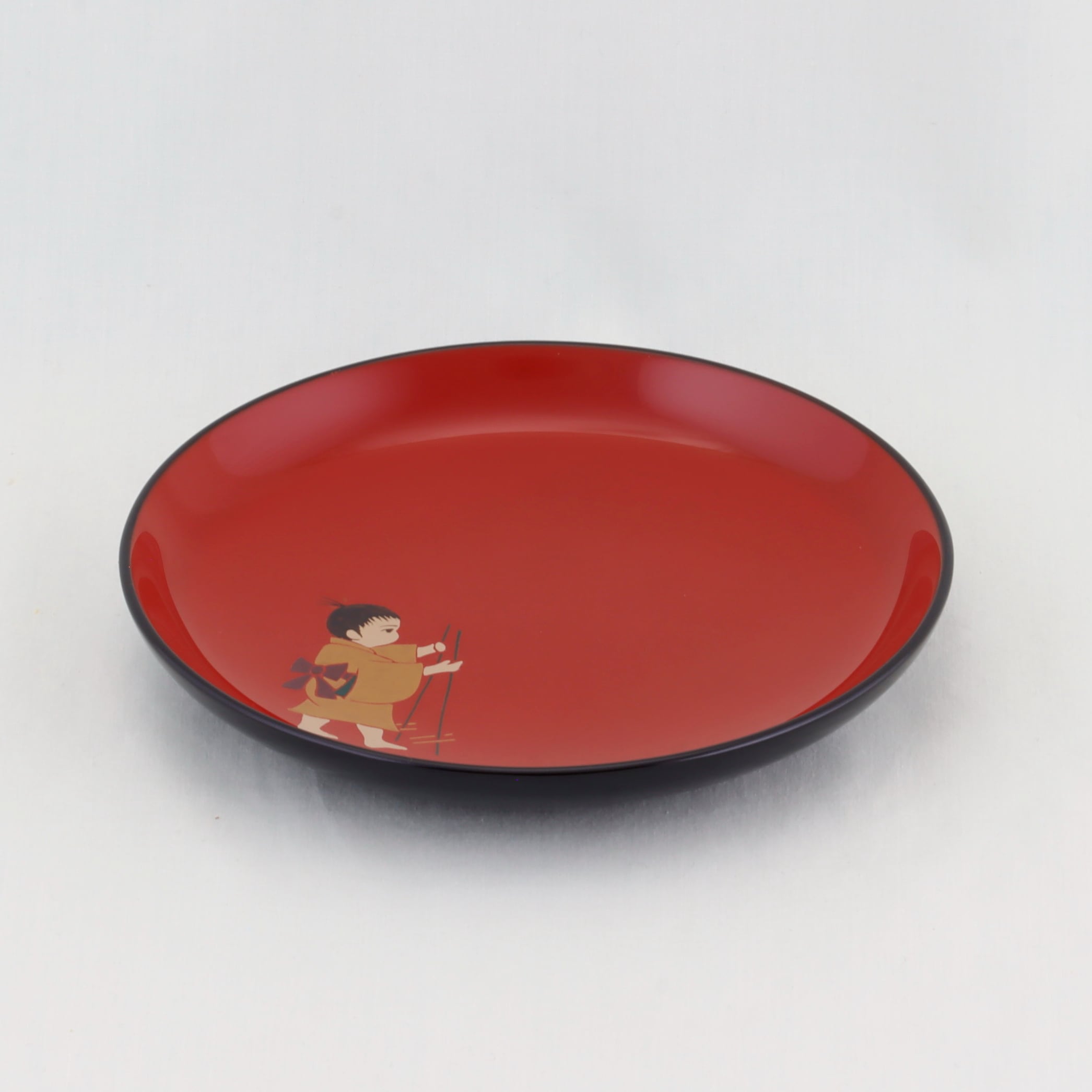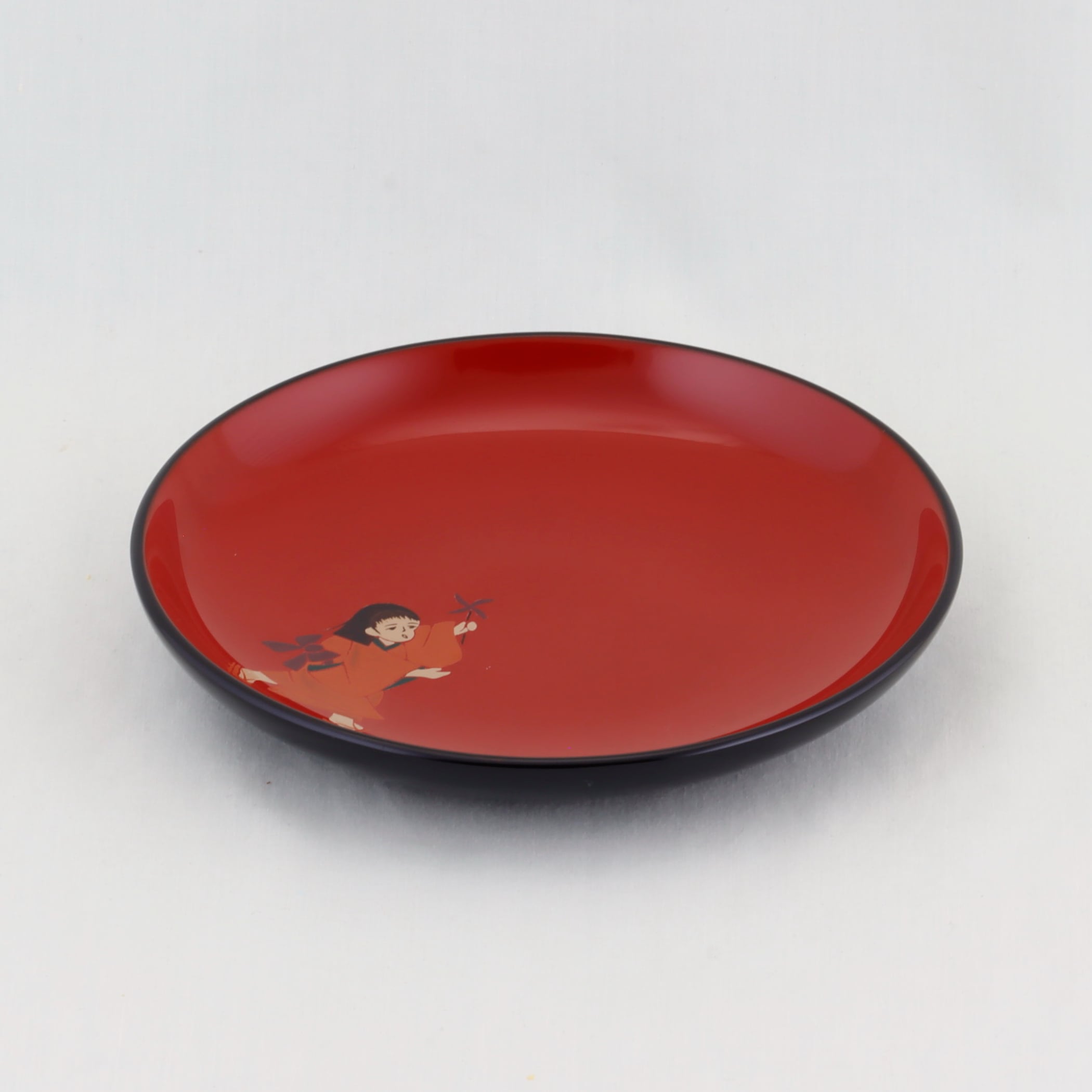 この銘々皿は、黒内朱塗りに、愛らしい童蒔絵が施された美しい仕上がりが特徴です。