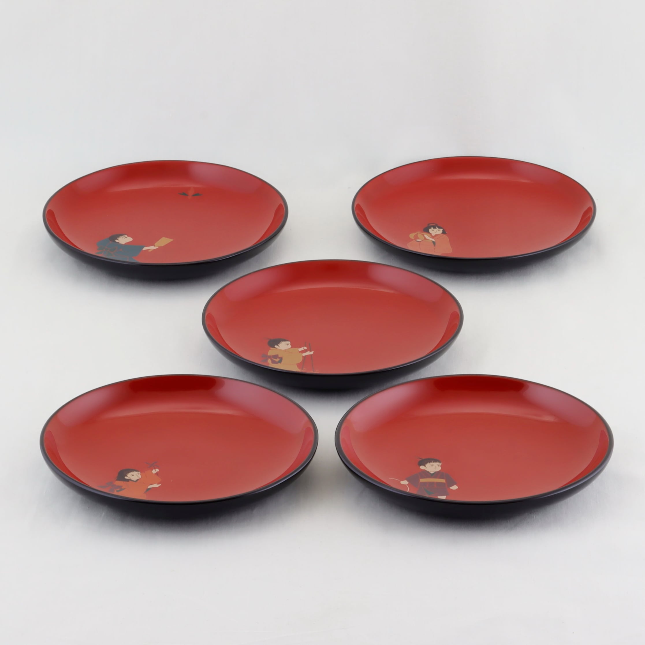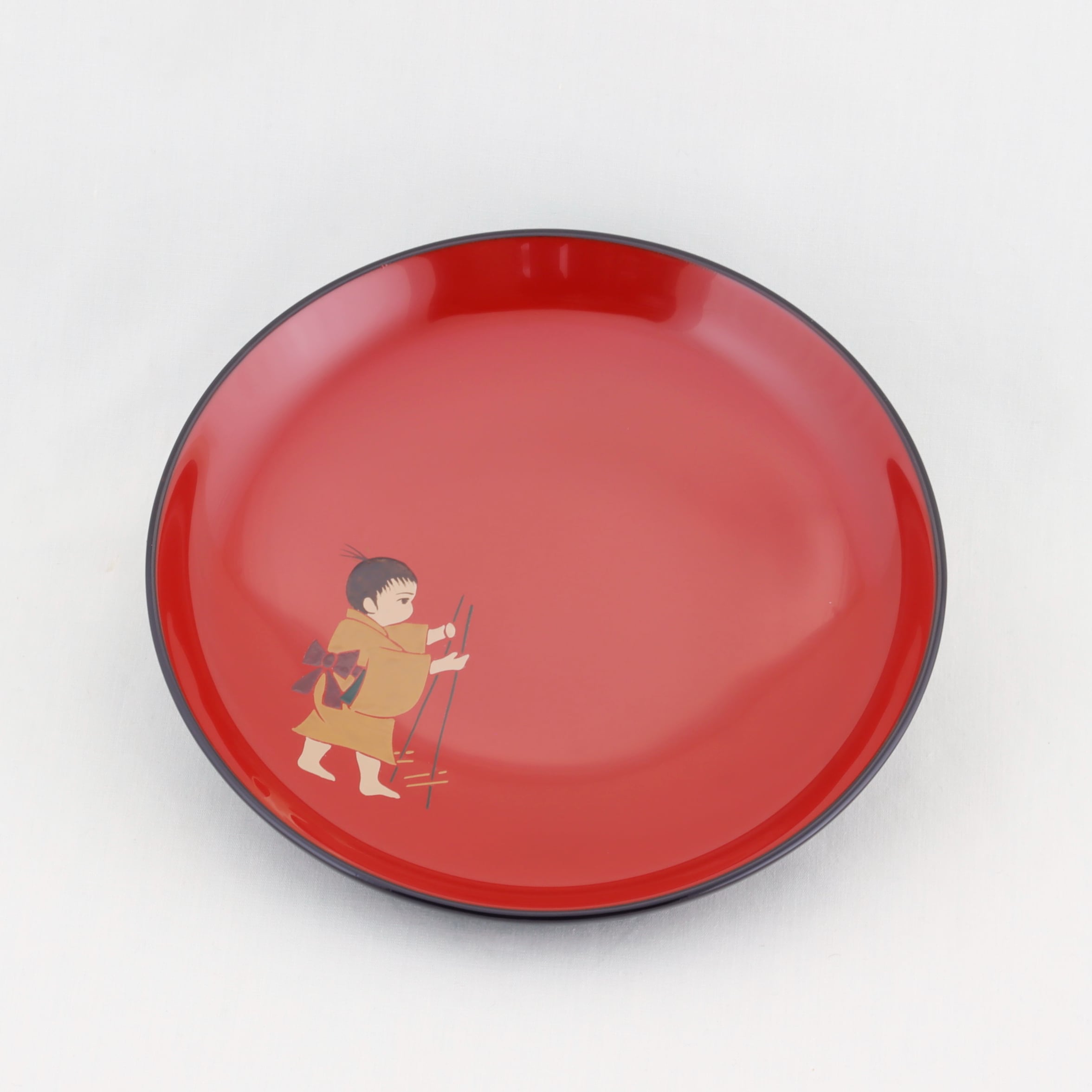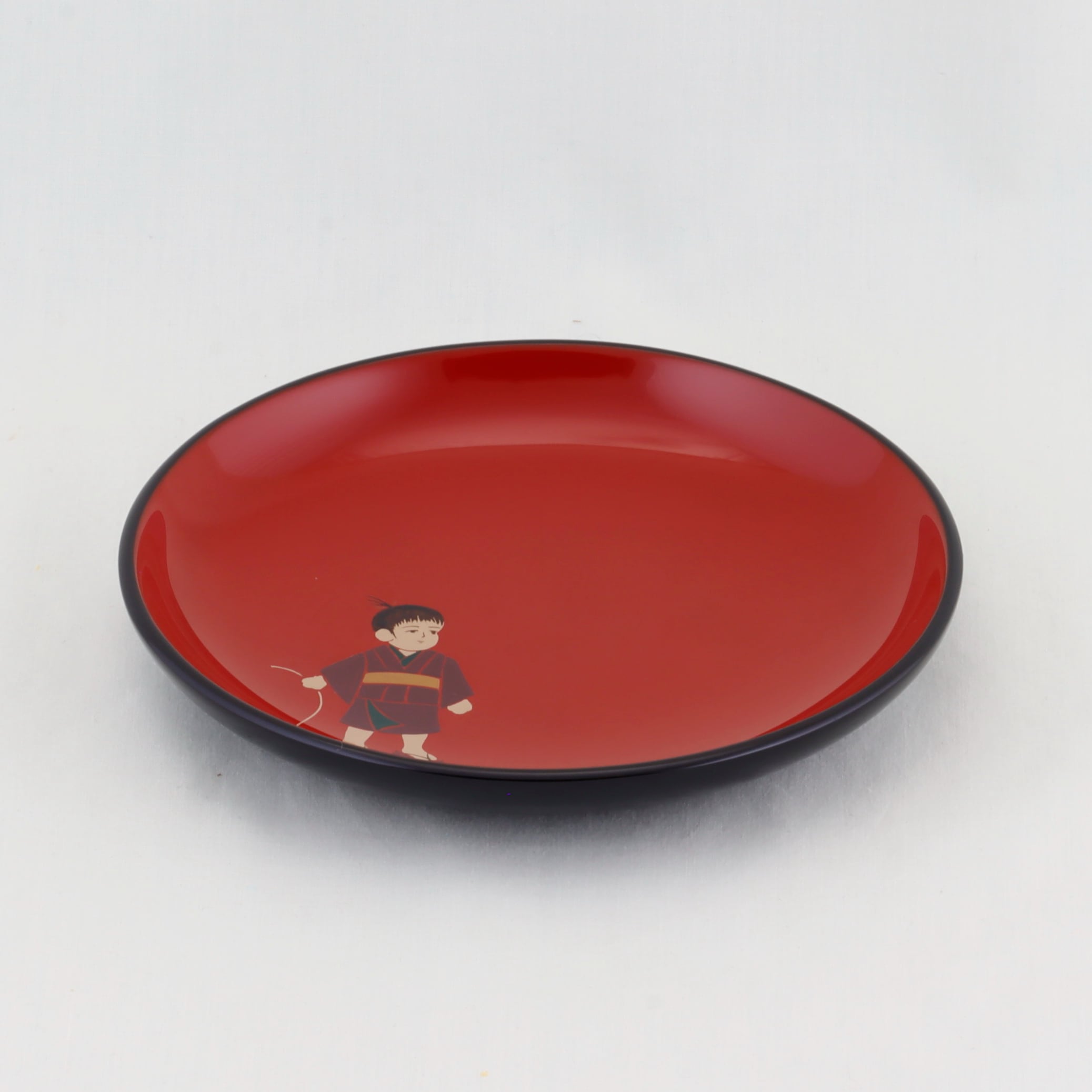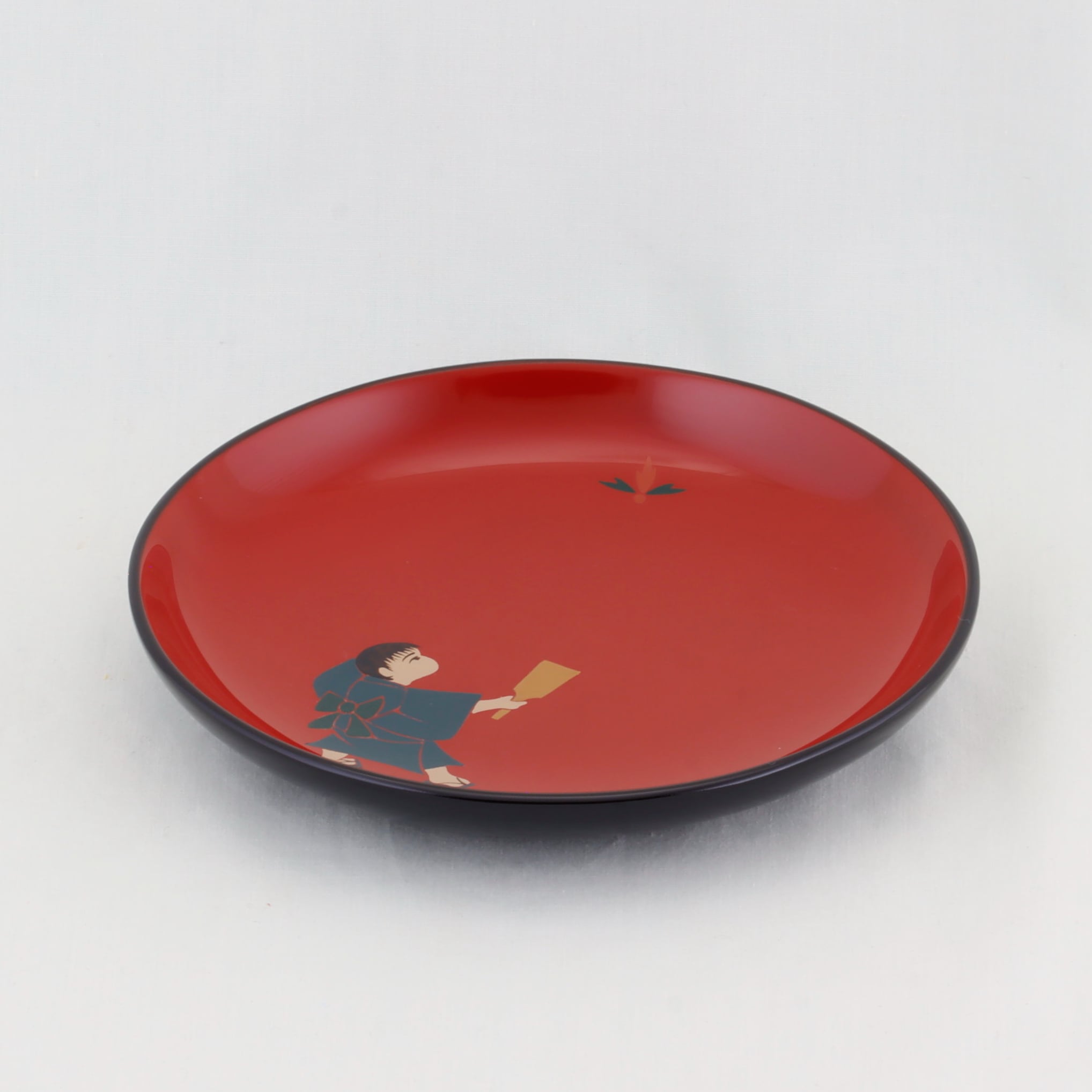 この銘々皿は、黒内朱塗りに、愛らしい童蒔絵が施された美しい仕上がりが特徴です。