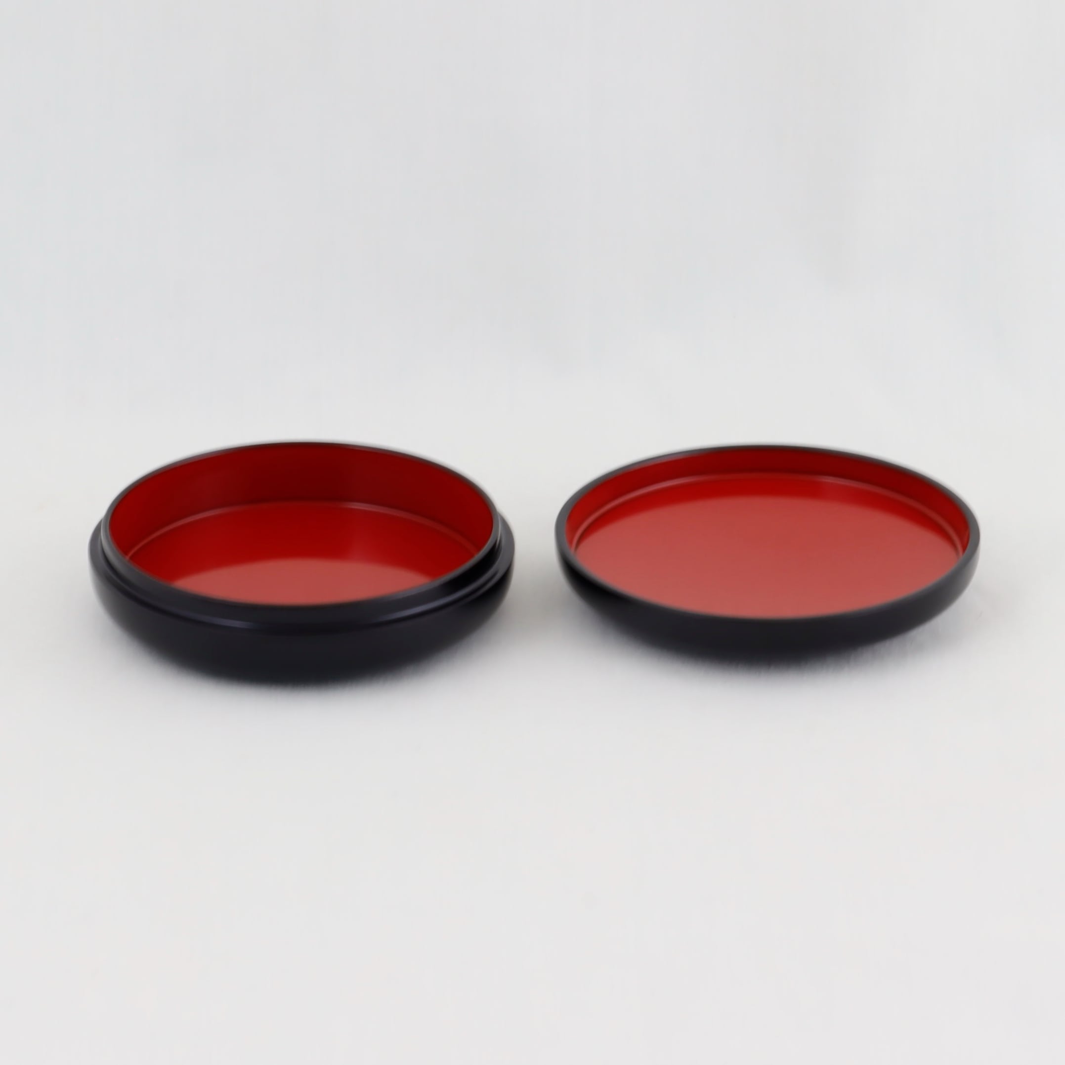 この香合は、上品な黒内朱塗が施されて、シンプルながらも洗練されたデザインが魅力です。