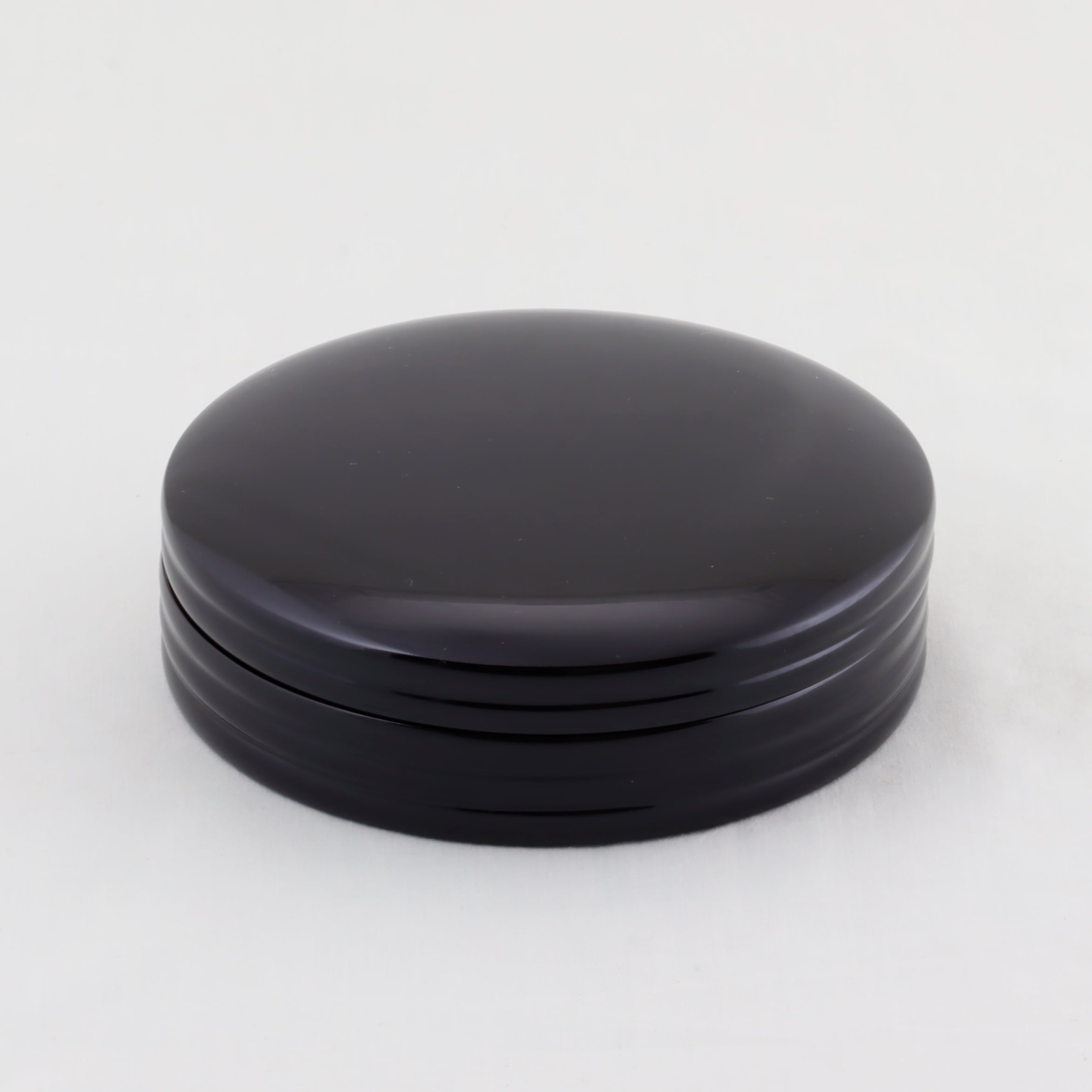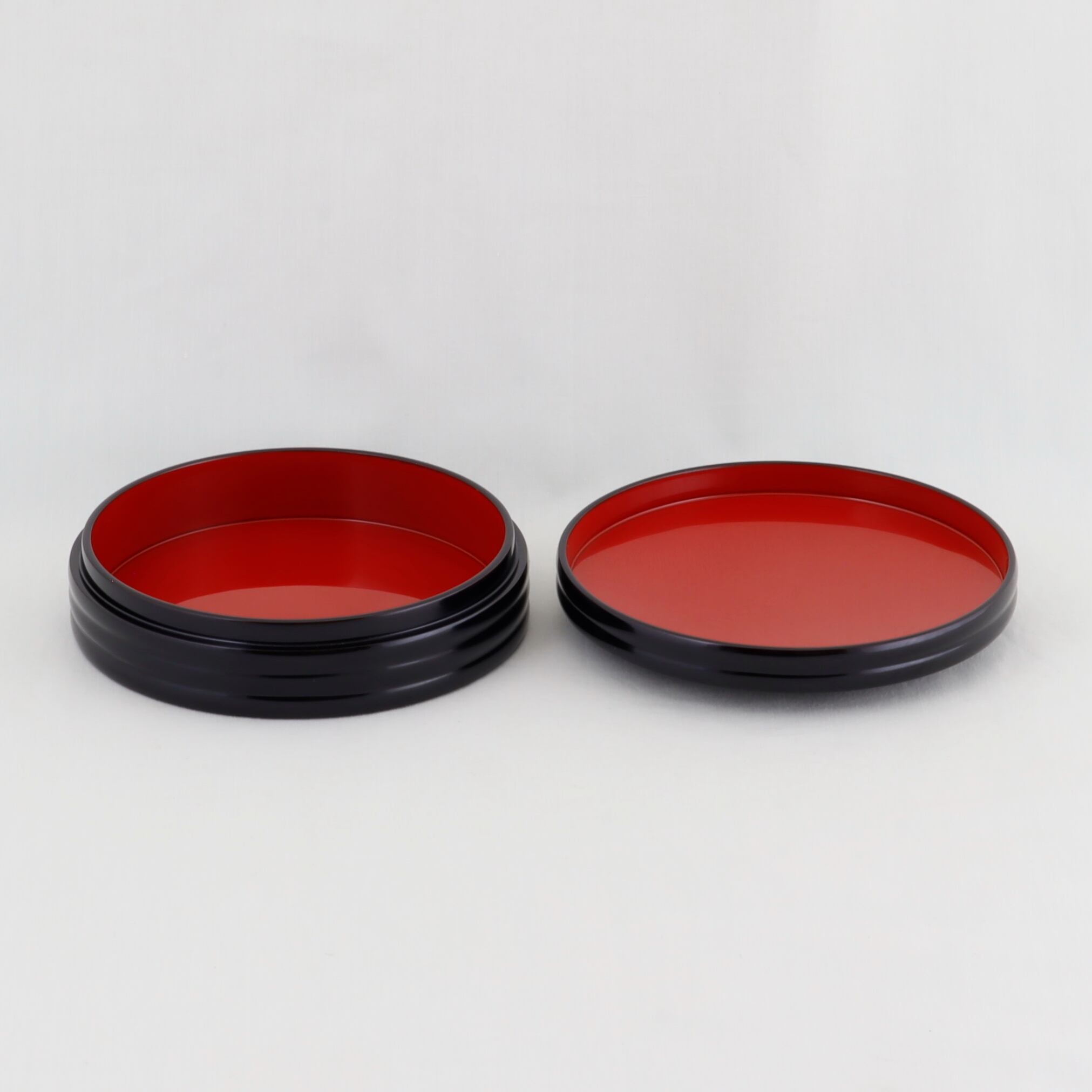 この香合は、上品な黒内朱塗で仕上げられ、香合の外廻りは平筋が彫られて平鍬形となっております。