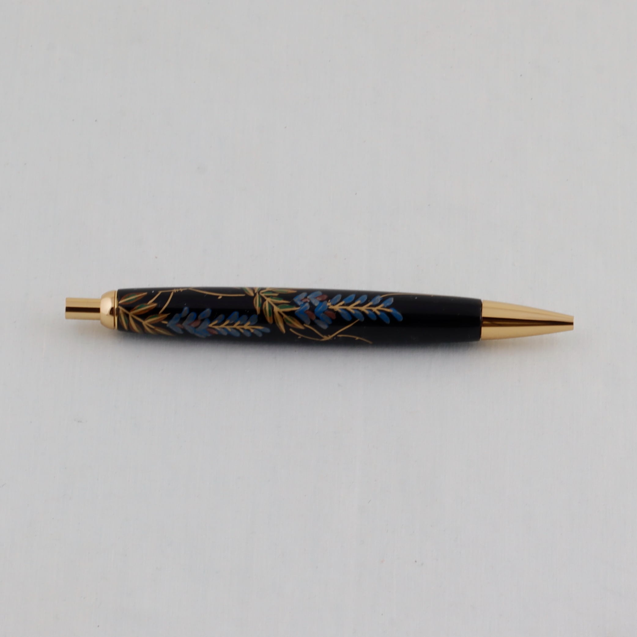 このボールペンは、深い黒塗の美しさと繊細な藤蒔絵の装飾が特徴で、書く楽しさを一層引き立てるアイテムです。ビジネスシーンや特別な場面でもその存在感を発揮し、大切なメッセージを書く際にぴったりです。