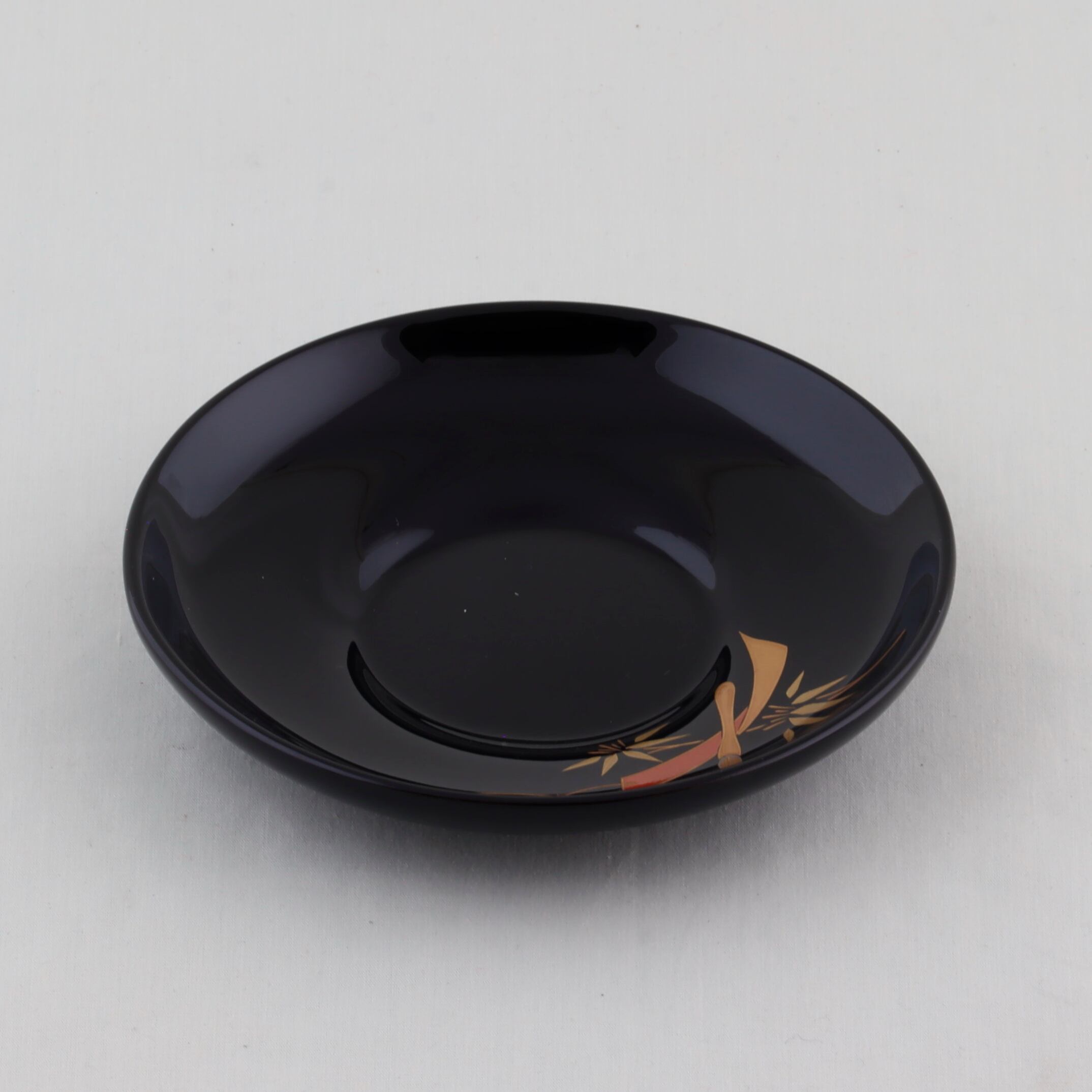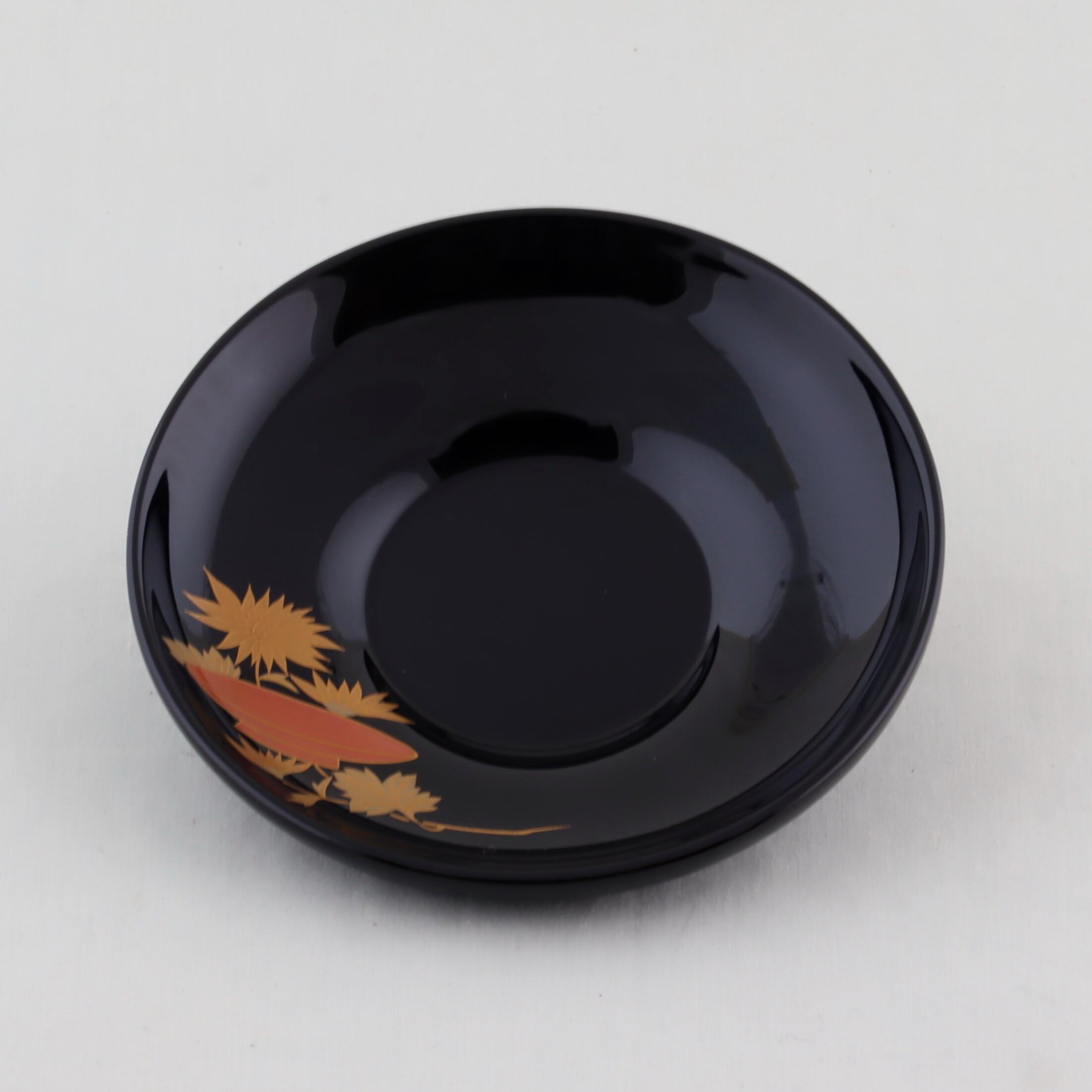 この茶托は、ダルマ形の美しい黒塗に仕上げられており、五節句をテーマにした繊細な蒔絵が上品な輝きを添えています。五節句蒔絵は、季節ごとの祝いの象徴を表現しており、見る人に幸せな気持ちをもたらすデザインです。五種類の華やかな模様が彩ることで、食卓に華を添えます。