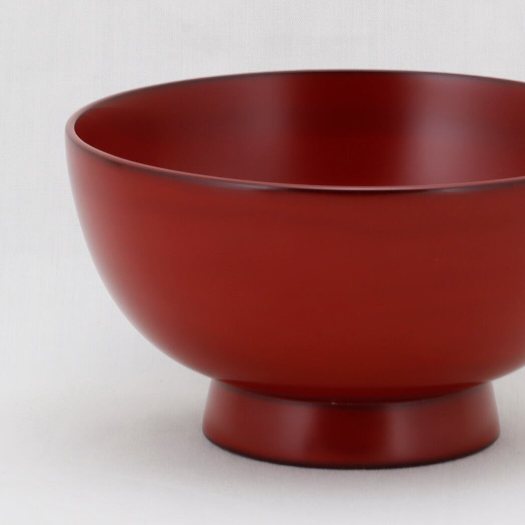 く熱さが手に伝わりません。丸形のフォルム丸で口当たりの良いお椀です。本朱塗の落落ち着いた朱色で使う愉しみが深まります。毎日お使いになるよりワイ椀として、またプレゼント品としても使えます。