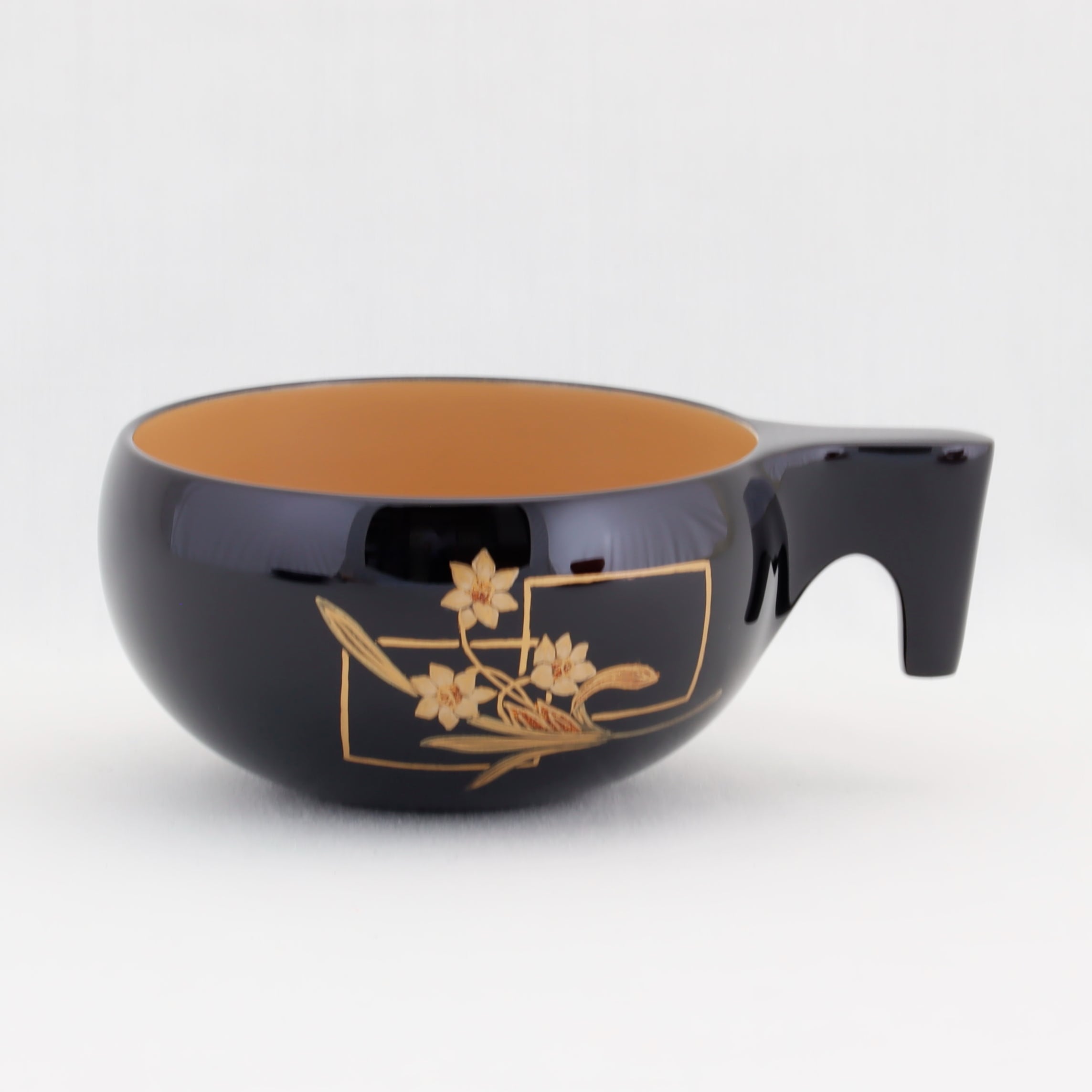 輪島塗職人がひとつひとつ手作業で丁寧に仕上げた珈琲カップは、日本の美意識と伝統技術が息づいています。気品漂う水仙蒔絵のデザインは、芸術的な美しさを感じさせ、使う度に心を和ませてくれます。