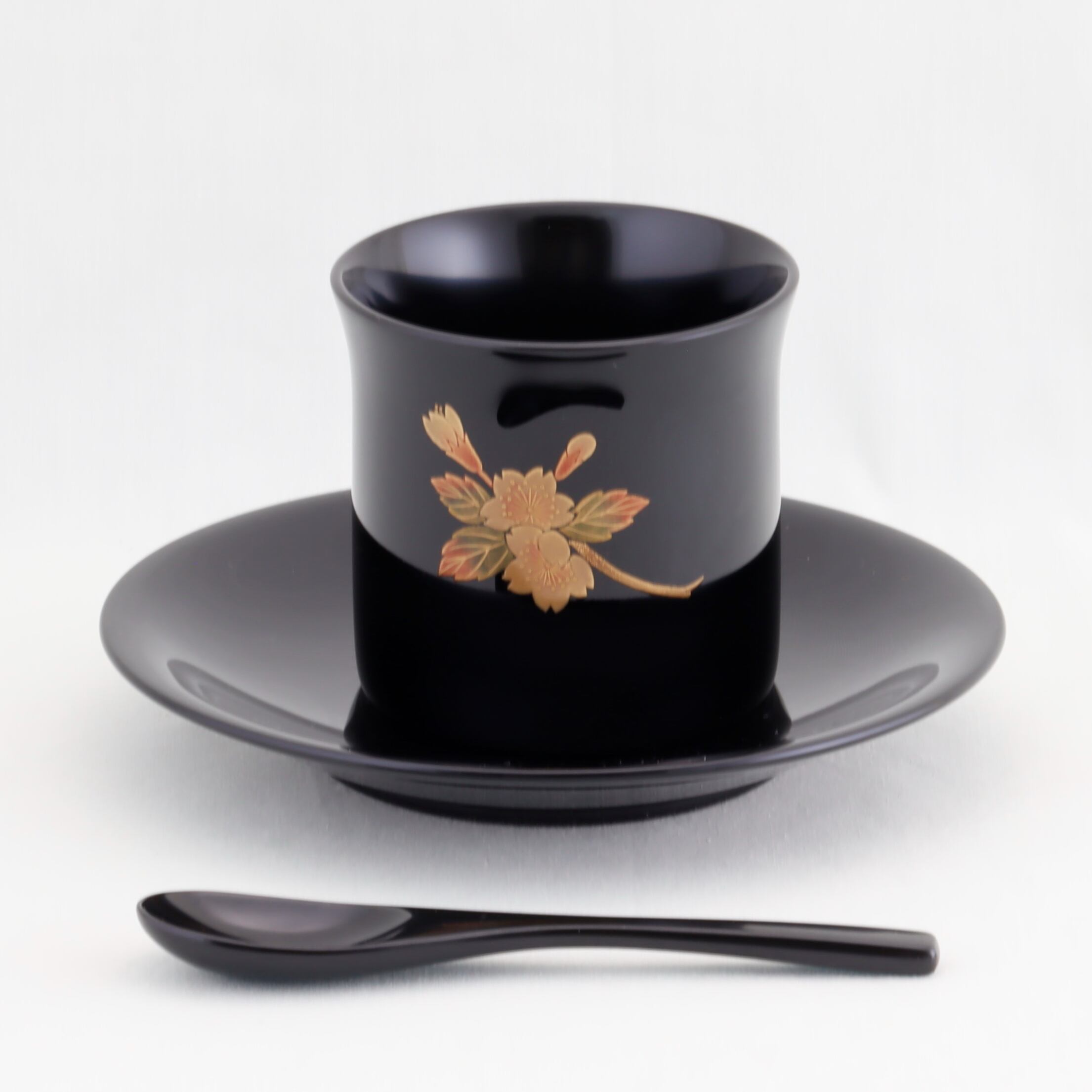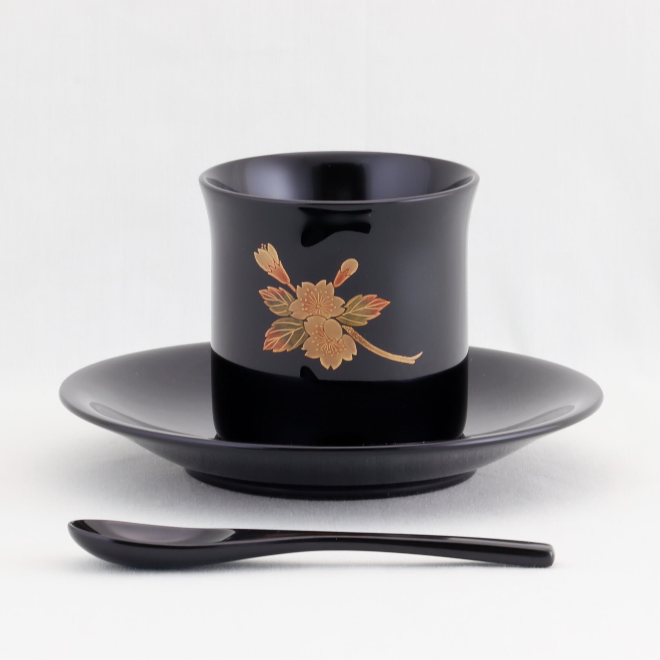 輪島塗職人がひとつひとつ手作業で丁寧に仕上げた珈琲カップは、日本の美意識と伝統技術が息づいています。気品漂う桜蒔絵のデザインは、芸術的な美しさを感じさせ、使う度に心を和ませてくれます。