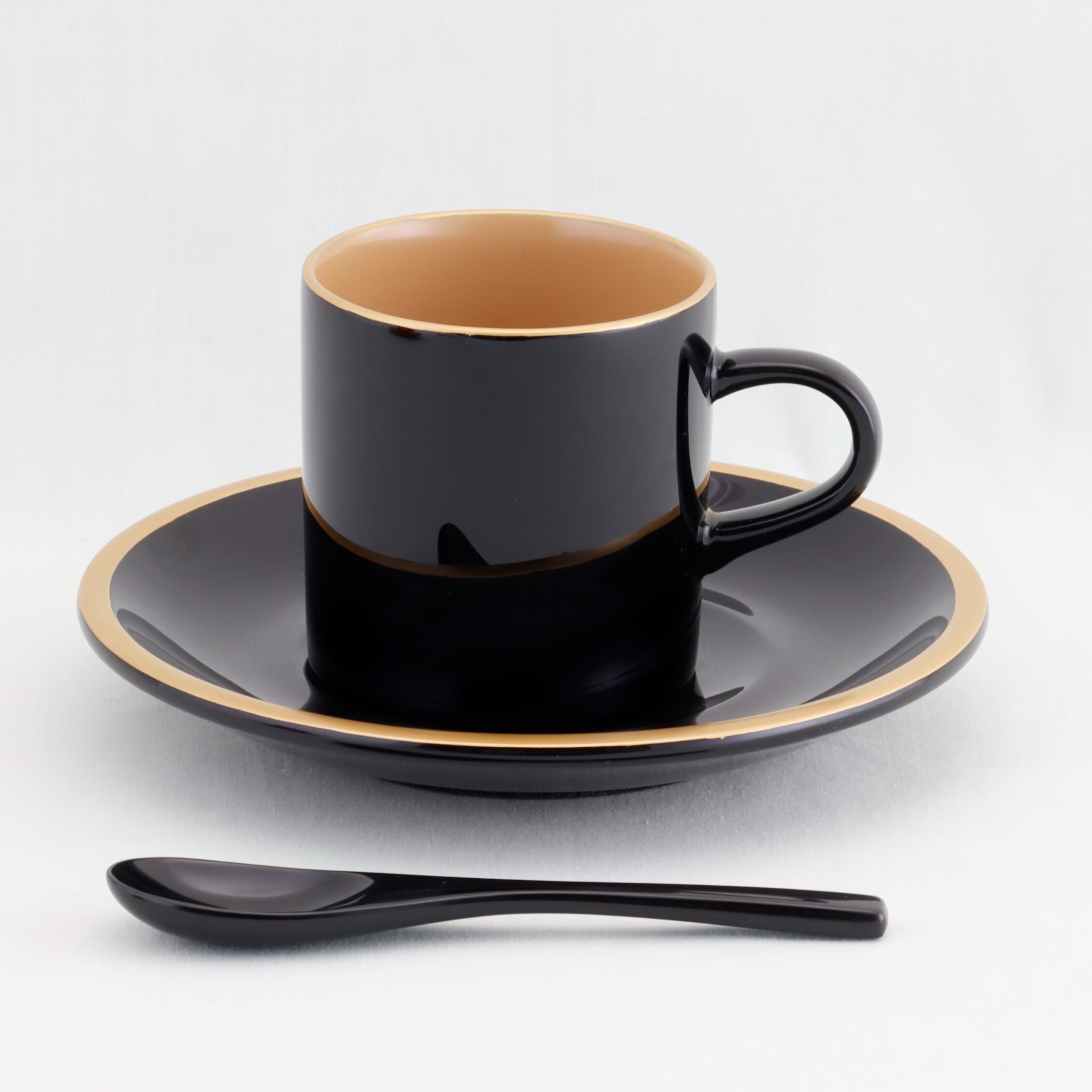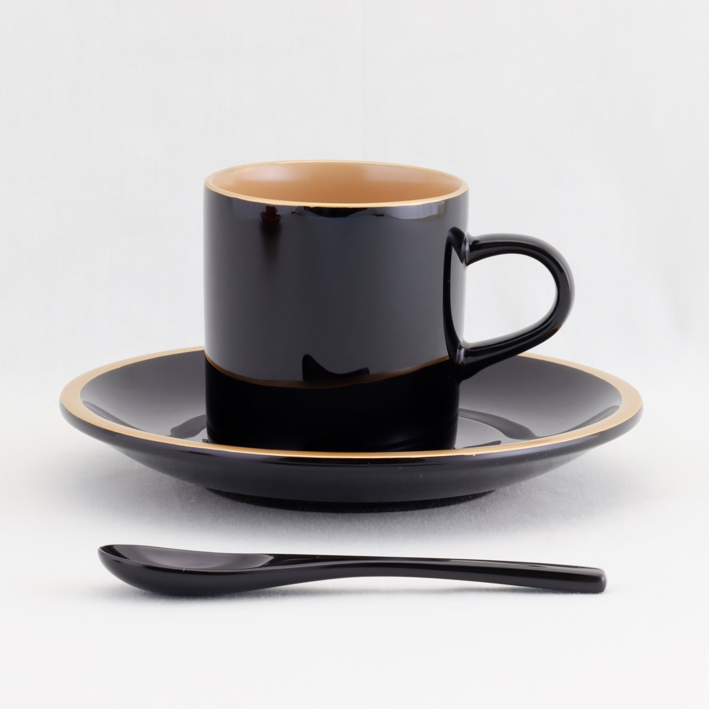 輪島塗職人がひとつひとつ手作業で丁寧に仕上げた珈琲カップは、日本の美意識と伝統技術が息づいています。上品な金縁蒔絵のデザインは、芸術的な美しさを感じさせ、使う度に心を和ませてくれます。