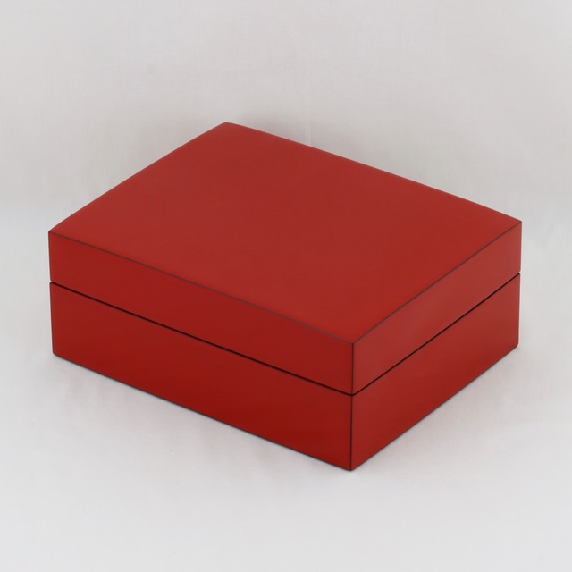 このジュエリー箱は華やかな朱塗の無地と